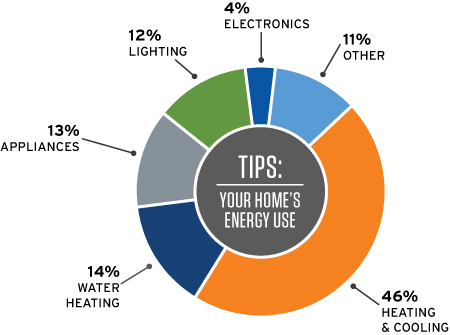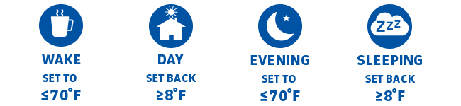 Set your thermostat to 70° or lower when you are home, and lower it when you are asleep or away.
